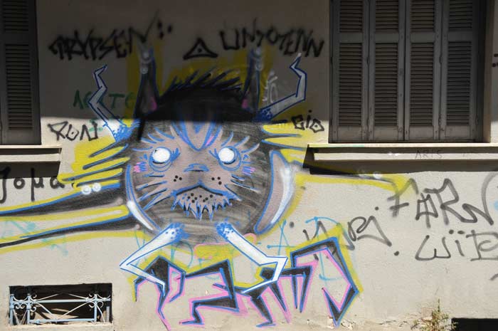 Der Weg hinauf in die Altstadt zeigt schnell auch das andere Gesicht Thessalonikis: von vielen als Schmiererei und Sachbeschädigung verschrien, spiegeln die zahllosen Spraybildern doch auch die Gesellschaft wieder.