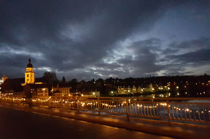 Ein abendlicher Bummel durch die Stadt war angesagt - einmal mehr sollte uns der Weg über die alte Mainbrücke führen, deren erste Konstruktion aus dem ausgehenden 14. Jahrhundert stammt, bis sie 1955 umgebaut wurde, um der Schifffahrt auf dem Main mehr Raum zu geben.