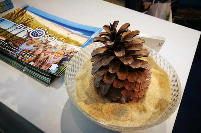 Die französische Atlantikküste präsentiert sich mit einem Tannenzapfen der dort so typischen Kiefernwälder und dem feinen Sand der von Sanddünen geprägten Landschaft: Dune du Pilat!
