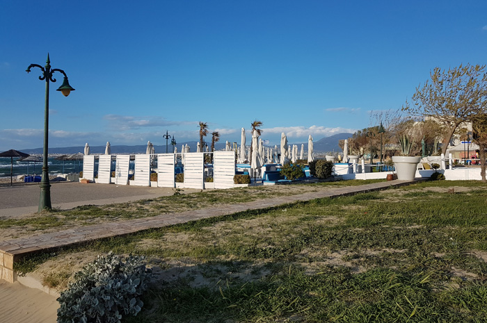 Noch allerdings ruht das Strand- und Bootsleben - entlang der Uferpromenade von Perea,