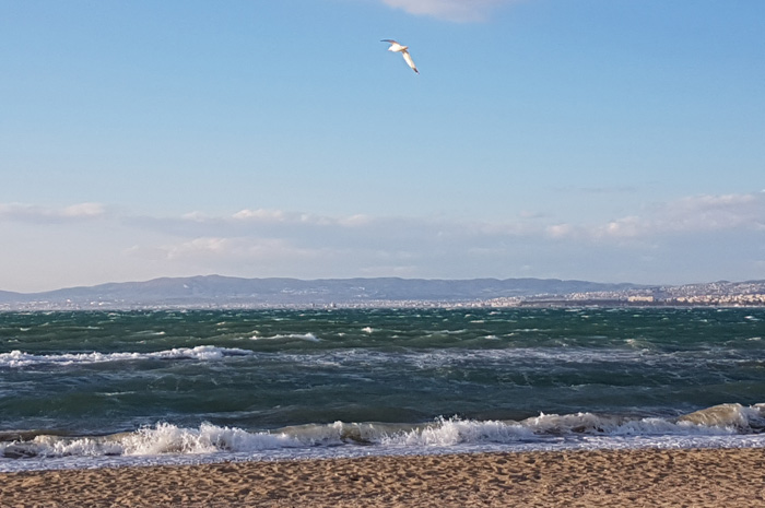 Trotz heftigen Windes, der kleine Sanddünen auf der Promenade und am Strand hatte entstehen lassen, genossen wir den Spaziergang an der Promenade,