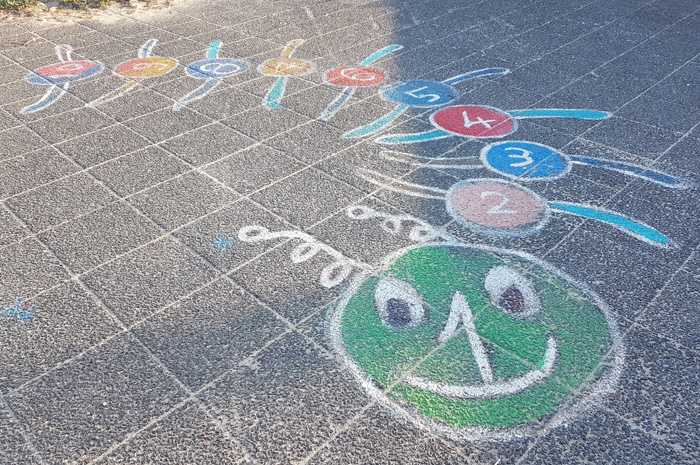 Ein auffälliges Kreidegrafitti, von Kindern gestaltet, schmückte die Promenade.
