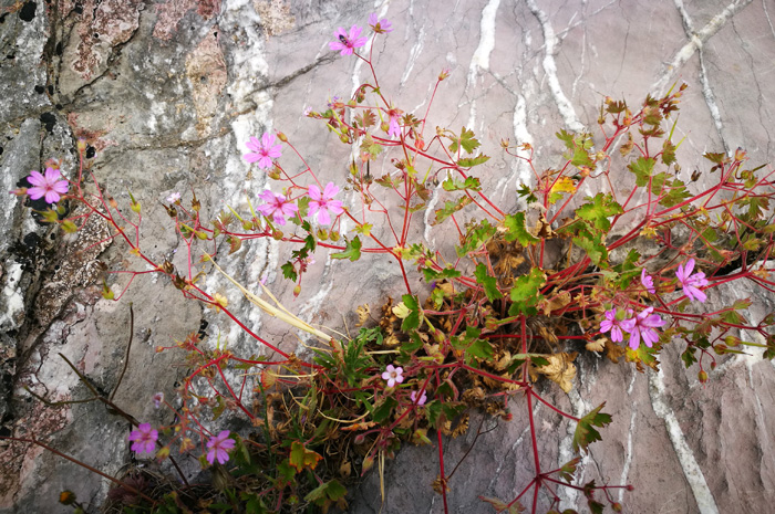 Blütenpracht überall, selbst in den Felsspalten!
