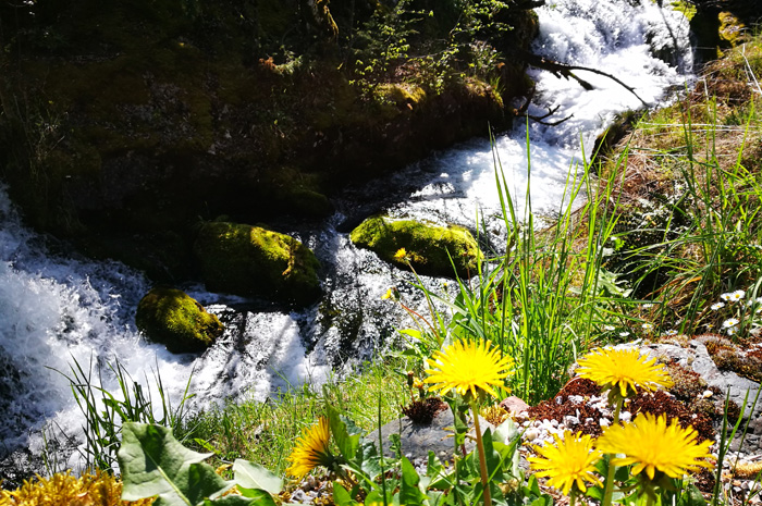 So sucht man auch den Ursprung der Wasserläufe in den steil aufragenden Felsen vergeblich, bis man dann endlich die Karstquellen als Ursprung akzeptiert.