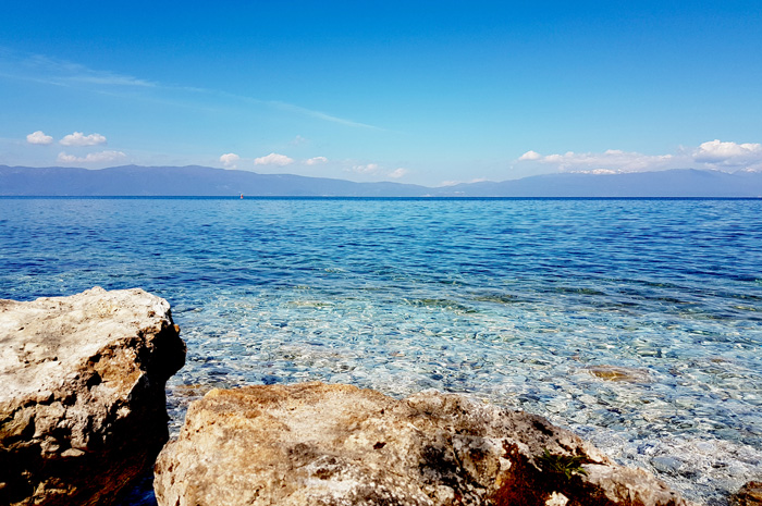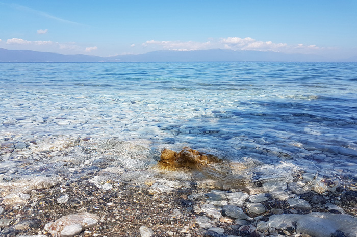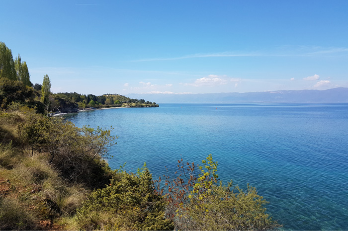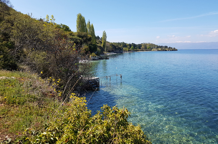 Unsere Erkundungstour sollte uns heute von Camping Rino in Struga entlang der Uferstraße von Ohrid bis zum Kloster Sveti Naum führen. Hin und wieder legten wir kurze Stopps ein, um hinunter zum Seeufer zu gelangen.