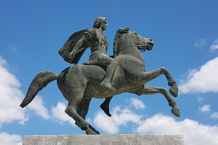 Wenig später erreichten wir das riesige Alexander der Große Monument.