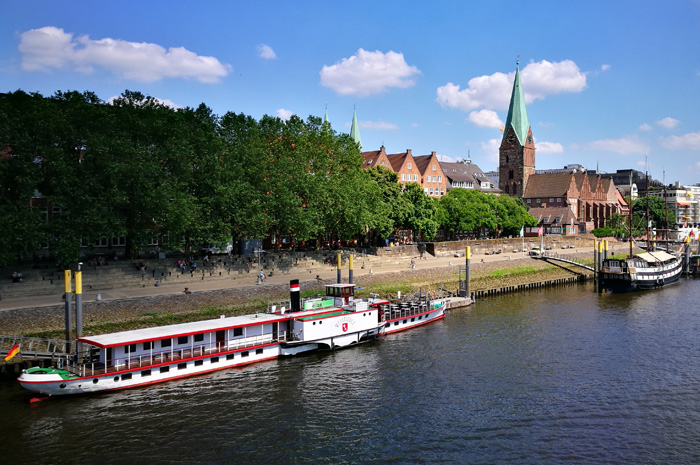 So ist es nicht verwunderlich, wenn man schon auf dem Weg dorthin, den wir über eine der zahlreichen Weserbrücken gehen, die unterschiedlichsten Sprachen vernimmt.