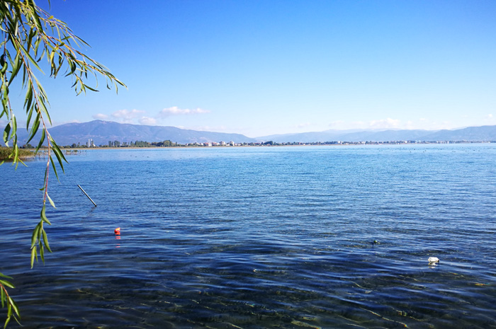 Die Regenwolken, die zu heftigen Schauern in der Nacht geführt hatten, waren fast gänzlich verschwunden, so zeigte sich der Ohrid See fast schon im strahlenden Sonnenschein.
