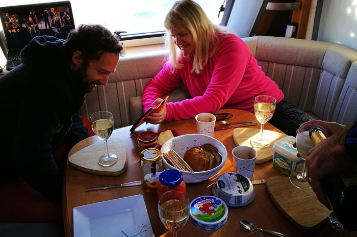 Zu einem besonderen Erlebnis wurde dieses Frühstück für Ruth und Alan (beide stammen aus Neuseeland), da sie bislang nie Croissants aus der Dose gesehen, geschweige denn gegessen hatten. So wurde schon das Öffnen der Dose zu einem Erlebnis, vom späteren Belag des Croissants mal ganz abgesehen.