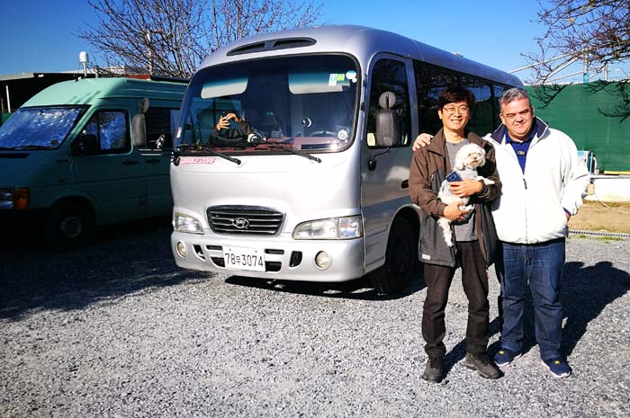 Wollten die einen in Richtung Süden, sprich Peloponnes und Kreta, hier im Bild Camper-Freunde aus Korea und ein trauriger Toni vom Station Camperstopp Zampetas, der auch so gern mitgefahren wäre, ....
