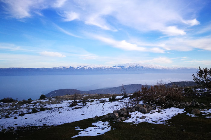 So führte unsere diesmalige Route über Mazedonien zur Station 10 Camping Rino am Ohrid See, weiter nach Tirana zur Station 9, dem Camperstopp am Hotel Baron (im Bild der schneebedeckte Magaro im Nationalpark Galicica).