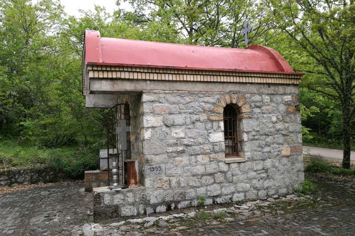 Auf eine dieser Wegekapellen sind wir während der Abfahrt vom Jablanica Gebirge gestoßen, die unser Interesse geweckt hatte, zumal sie geöffnet war. Zwar ein Neubau aus dem Jahr 1991, was vielleicht mit dem Datum der Unabhängigkeitserklärung Mazedoniens zu tun hat, egal, wir wollten sie uns ansehen.