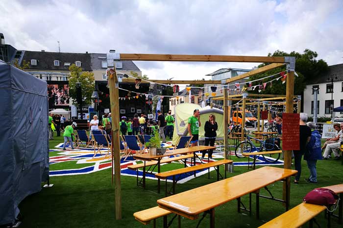 So fuhren wir für zwei Tage zum Kulturfest mit viel Musik, auch um dem Start der dritten Etappe der Deutschland Tour beizuwohnen, im Gepäck auch den so genannten Mini-Caravan der Firma GentleTent aus Wien, einem Fahrradanhänger mit aufblasbarem Zelt oberhalb der Ladefläche.