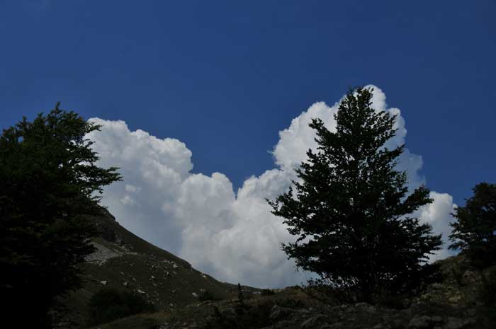 Erste dichte Wolken zogen über den Höhenkamm, auch erstes Grollen machte darauf aufmerksam, das ein Gewitter aufzog. Zurück zum Camping Rino.