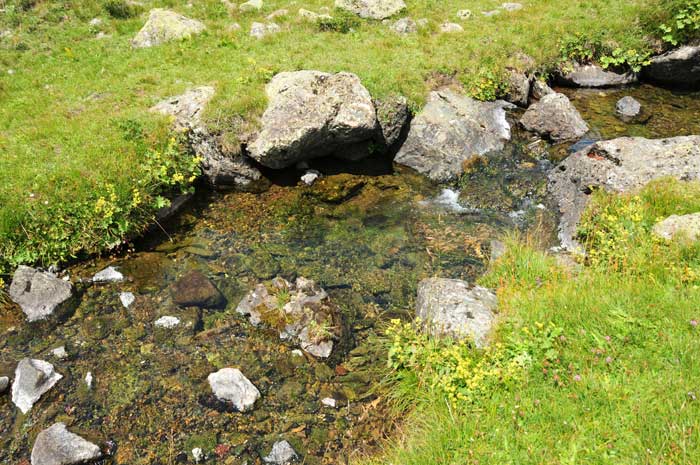 ……, dann zu einem kleinen Bachlauf mit klarem Quellwasser.