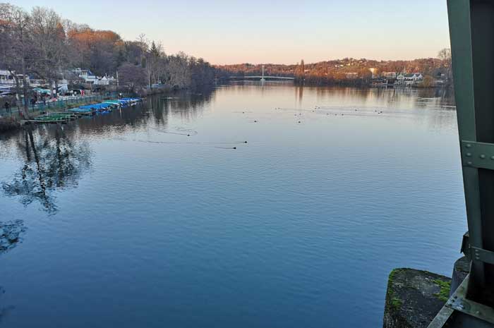 Wer den Rundgang um den See noch etwas ausweiten möchte, kann unterwegs also weitere Ziele mit angehen. Die Schiffe der Weissen Flotte liegen im Hafen am Südufer des Baldeneysees. Sie verkehren in den Sommermonaten nach Fahrplan zwischen dem Stauwehr in Werden und der ehemaligen Eisenbahnbrücke, heute Fußgängerbrücke, die Heisingen mit Kupferdreh verbindet.