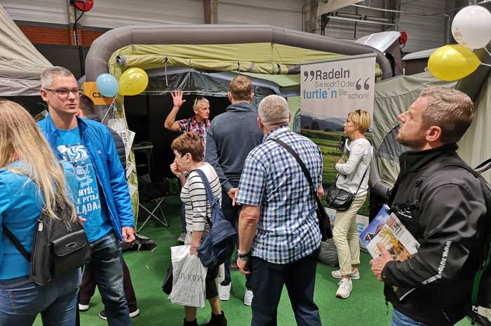 Erstmals in Warschau vertreten, der Zelthersteller GentleTent aus Wien, hier in Warschau mit Vorzelten und Dachzelten vertreten, auch um den polnischen Verbraucher und Camper kennen zu lernen. Natürlich war auch das BTurtle vertreten.