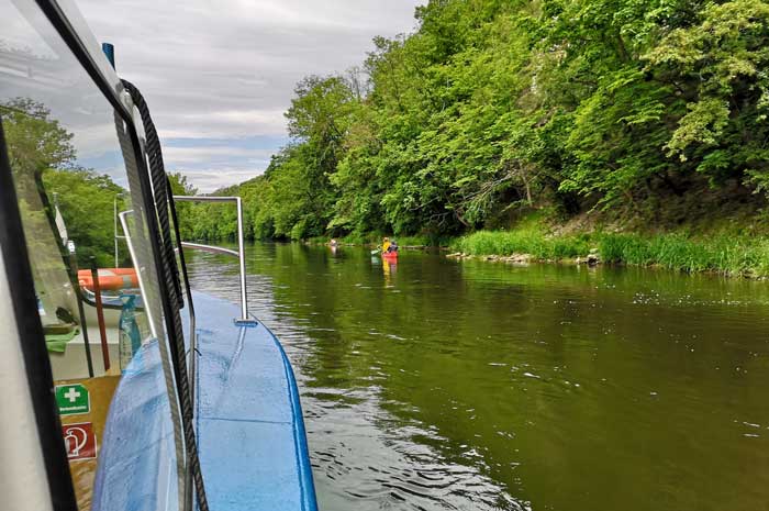 Uns war der Rückweg sowieso nicht ganz klar, denn direkt am Ufer der Saale gab es keinen Wanderweg. Wieder hoch zur Burg Saaleck, hmmm auch nicht wirklich ein Renner. Also kurz entschlossen beschafften auch wir uns Tickets für die Saaletour.