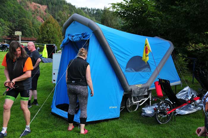 Wir hatten unseren Rundgang durch das idyllische Örtchen Wünschendorf an der Weißen Elster beendet und waren zum Gelände der Caravan-E-Bike-Camper zurück gekehrt, wo uns Jörg schon erwartete.