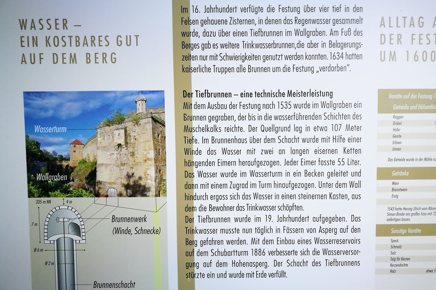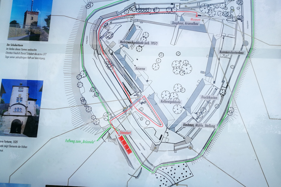 Heute, so klärt uns Rainer auf, ist Hohenasperg „Württembergs höchster Berg“: Es dauere nur fünf Minuten, um hinauf zu kommen, aber Jahre, um wieder herunter zu gelangen. Natürlich etwas verwundert, fragen wir nach, wie denn das gemeint sei. Die Erklärung folgt auf dem Fuße: