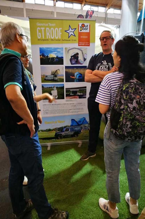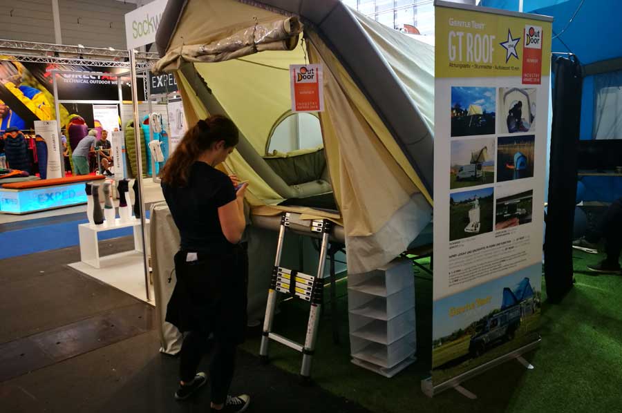 Der zweite Tag auf der Outdoor Messe in Friedrichshafen sollte auch zu einem erneuten Zusammentreffen mit der Firma GentleTent aus Wien führen, die gerade am Vorabend mit dem Industrie Award für ihr innovatives Dachzelt GT-Roof ausgezeichnet worden waren.