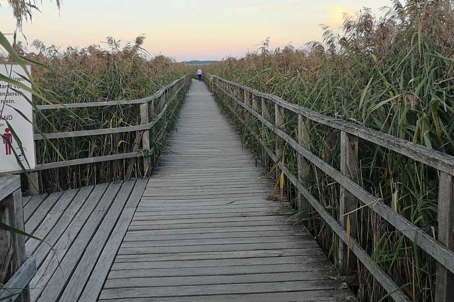 Der Federseesteg ist der einzige Zugang zum Federsee