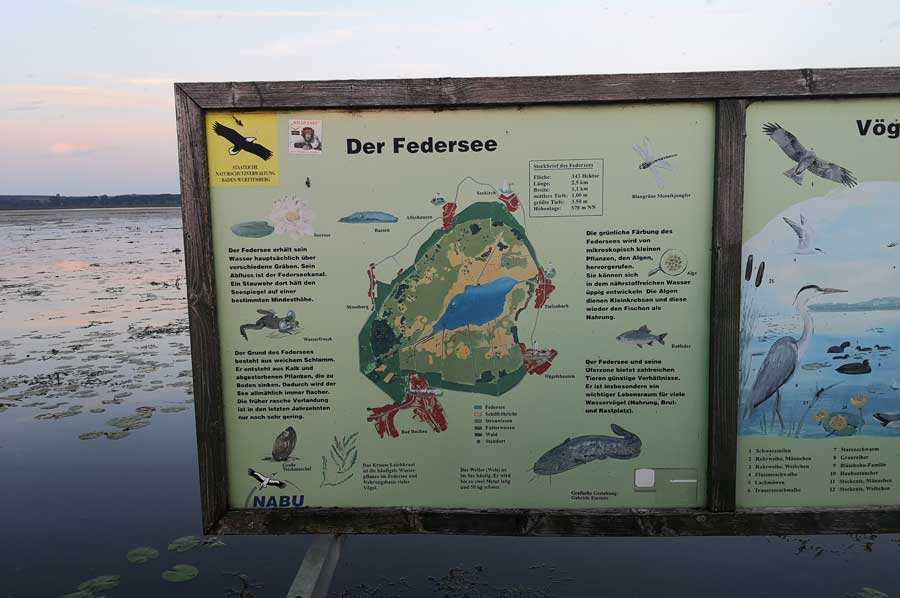 Der Federsee bei Bad Buchau in Oberschwaben ist mit einer Fläche von 1,4 km² der zweitgrößte See in Baden-Württemberg. Er liegt inmitten des mit 33 km² größten zusammenhängenden Moorgebietes Südwestdeutschlands und ist mit ihm der Rest eines einst sehr viel Größeren, etwa 50 km² bedeckenden nacheiszeitlichen Sees. Dieser Komplex aus See und Moor stellt heute den Kern des geologischen Federseebeckens dar, das nach Renaturierungsmaßnahmen inzwischen mit seinen früheren Ufern und Inseln eine überragende natur- und kulturhistorische Bedeutung besitzt.