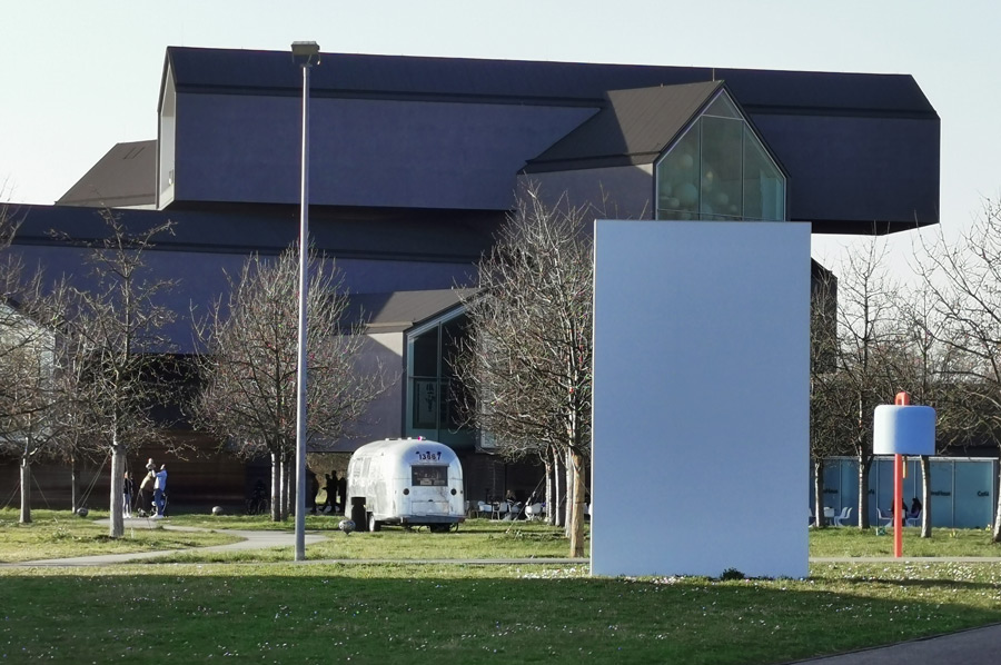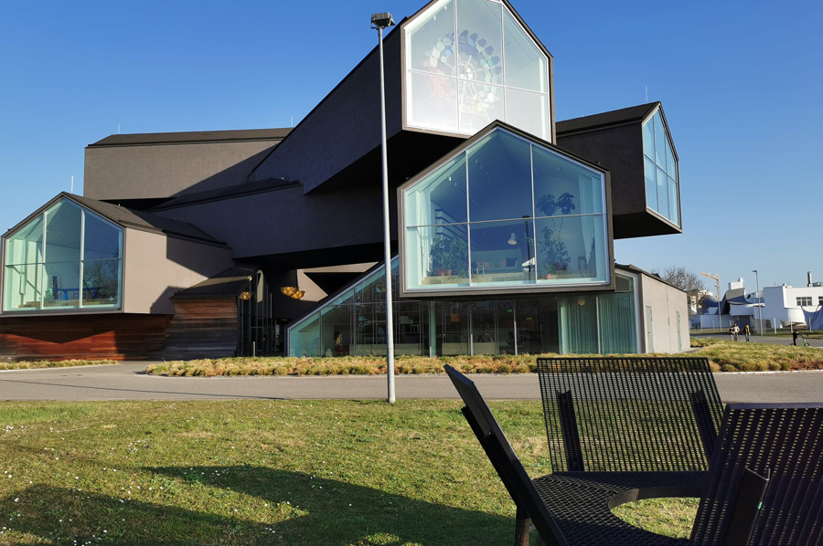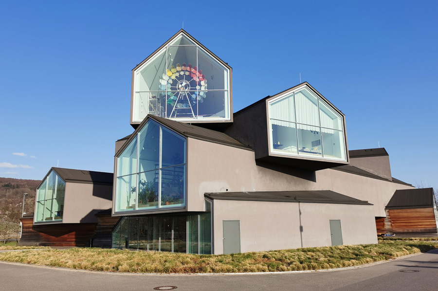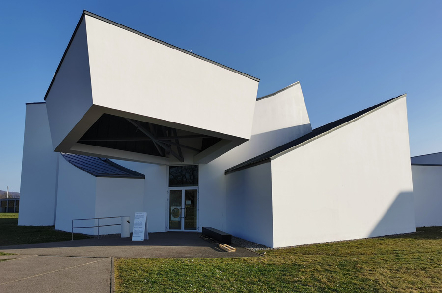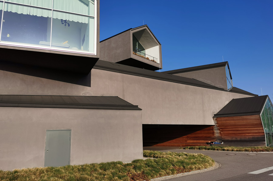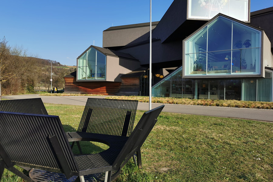 Einmal mehr war dann allerdings die Zeit soweit vorangeschritten, dass wir nicht auch noch ein der hier angebotenen Architektonischen Führung teilnehmen konnten, denn seit den 1980er Jahren hat das Unternehmen Vitra Bauwerke von und mit weltweit renommierten Architekten errichten lassen. Das einzigartige Architekturensemble umfasst Bauten u.a. von Tadao Ando, Frank Gehry, Nicholas Grimshaw, Zaha Hadid, Herzog & de Meuron, SANAA, Álvaro Siza und anderen. Der Architekturkritiker Philip Johnson schrieb seiner Zeit darüber: »Seit der Gründung der Weißenhofsiedlung in Stuttgart im Jahr 1927 wurden nirgends auf der Welt mehr Bauwerke von den herausragendsten Architekten der westlichen Hemisphäre errichtet.«