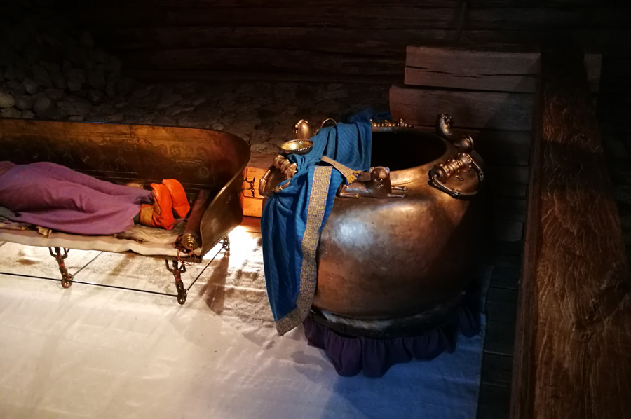 - ein importierter 500 Liter fassender Bronzekessel, ursprünglich zu zwei Dritteln mit Honigmet gefüllt
