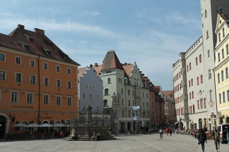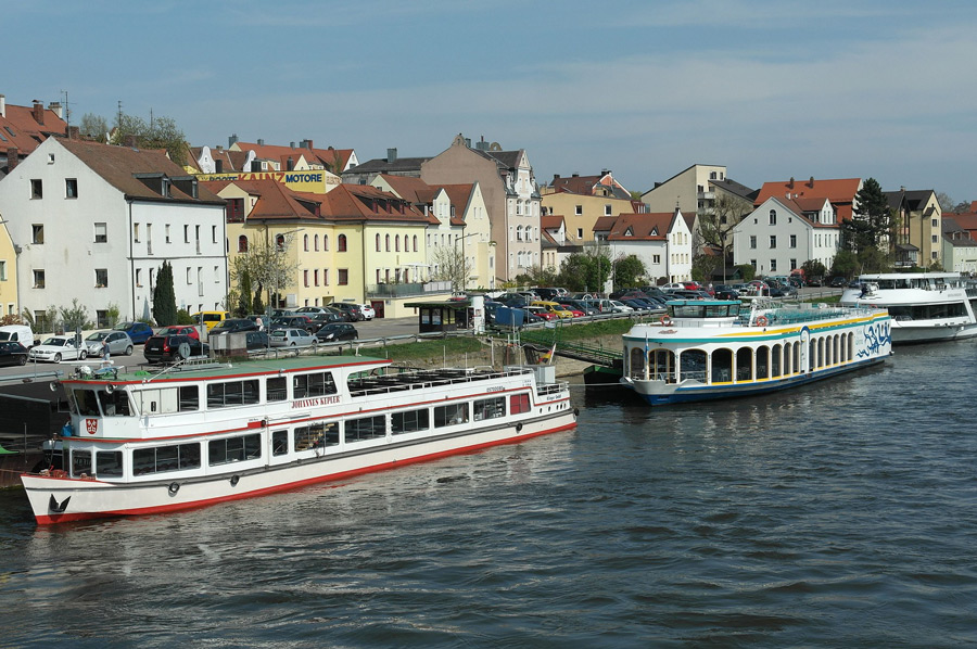 Nun war es endlich soweit, auf nach Regensburg. Über die stark befahrene A3 ging es an Nürnberg vorbei bis hinein in das Stadtzentrum von Regensburg. Wir hatten uns für das erste Treffen in seinem Buchgeschäft am Franz von Taxis Ring verabredet und unser Navi um die Angabe einer nahen Parkmöglichkeit "ersucht". So gelangten wir sehr schnell zum Großparkplatz am Krankenhaus Barmherzige Brüder an der Prüfeninger Straße. Erstmalig in Regensburg fragten wir dann eine ältere Dame nach dem weiteren Weg zum Buchgeschäft. Sehr freundlich aber bestimmt forderte die Dame uns auf, ihr in den gerade ankommenden Bus mit einzusteigen. Das Parkticket beinhaltet auch die Möglichkeit zur Nutzung der öffentlichen Verkehrsmittel und so gelangten wir schnell zum Ziel. Bis zur Ladentür wurden wir begleitet und höflich verabschiedet. Eine wirklich nette und hilfsbereite Person.