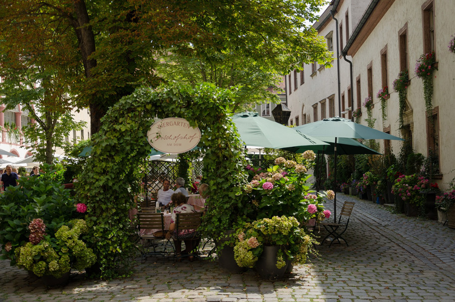 So werden z. B. im Betrieb der Historischen Wurstkuchl in der Thundorfer Straße zu den Bratwürsten der hauseigenen Metzgerei auch der Senf und das Sauerkraut selbst hergestellt. Trotz des allgegenwärtigen Rauchs vom Holzkohlegrill wollen auch wir das typische Ambiente erleben und setzen uns in die wirklich winzige Gaststube hinein. Uns faszinieren hier besonders die aus den letzten Jahrhunderten festgehaltenen Marken der Wasserstände der Donau. Immer wieder war das Wurstkuchl starken Überschwemmungen ausgesetzt.