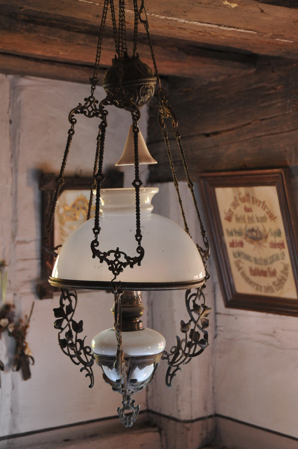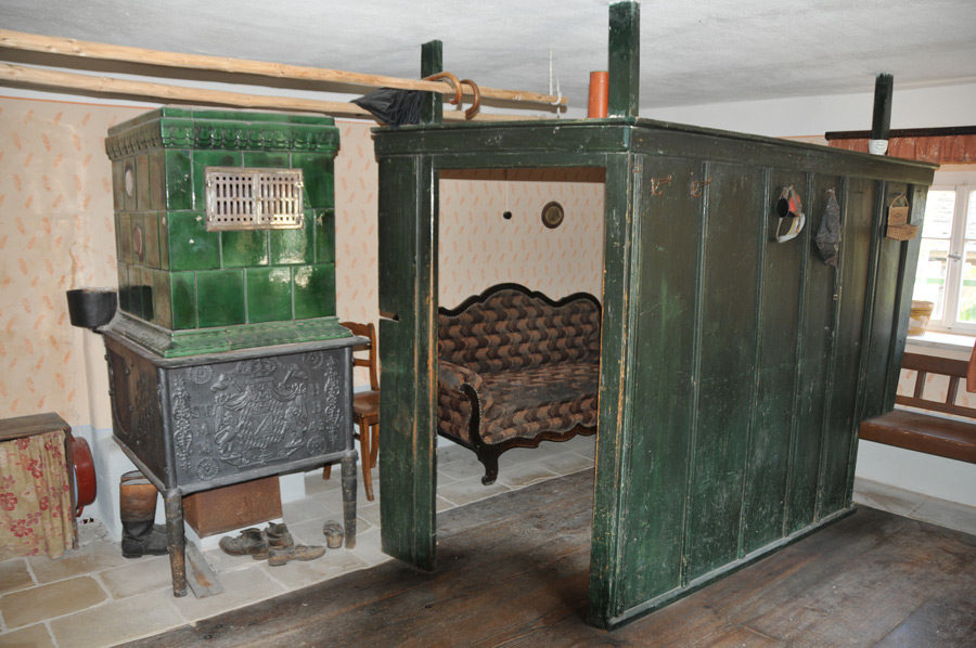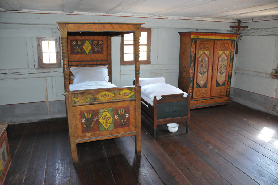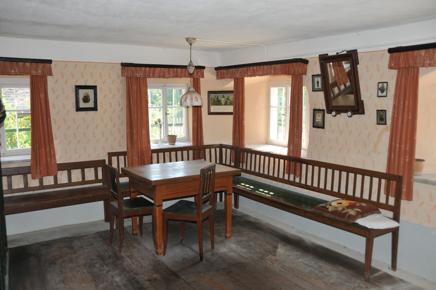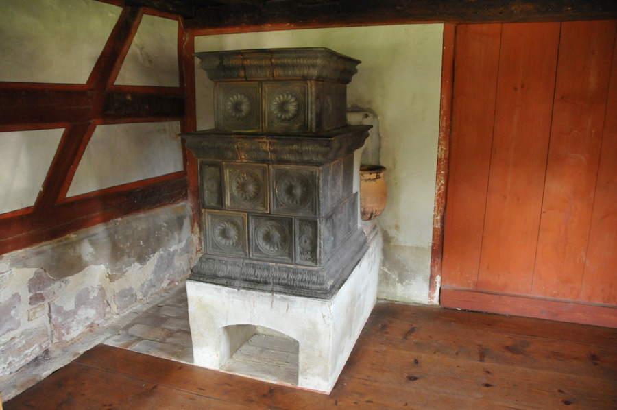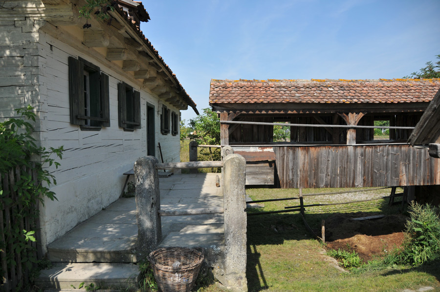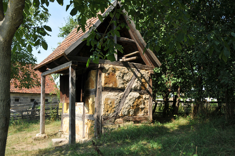 Wir setzen den Weg fort und kommen zur Baugruppe der historischen Gebäude aus dem Altmühlgebiet. Hier ist es die besondere Art der Dacheindeckung aus Kalkplatten, die so außergewöhnlich erscheint. Ein in der Gruppe der Jurahäuser befindliches Taglöhnerhaus entstammt dem 14. Jahrhundert. Allein die Konstruktion des Dachtragwerks ist bei dem Gewicht der Eindeckung schon bewundernswert.