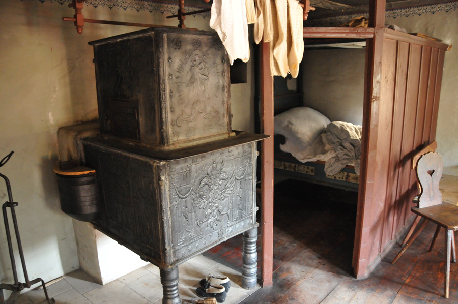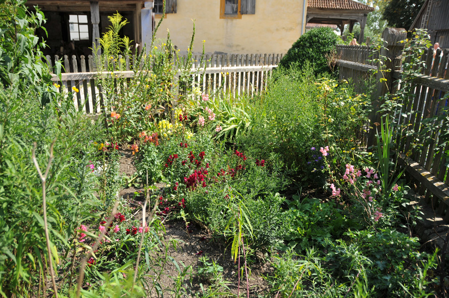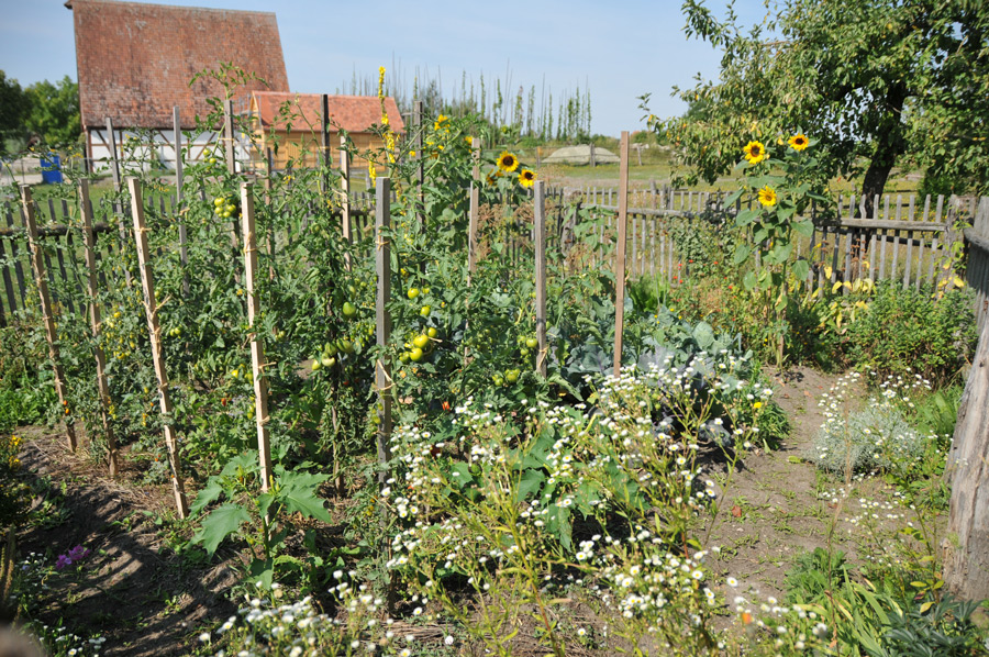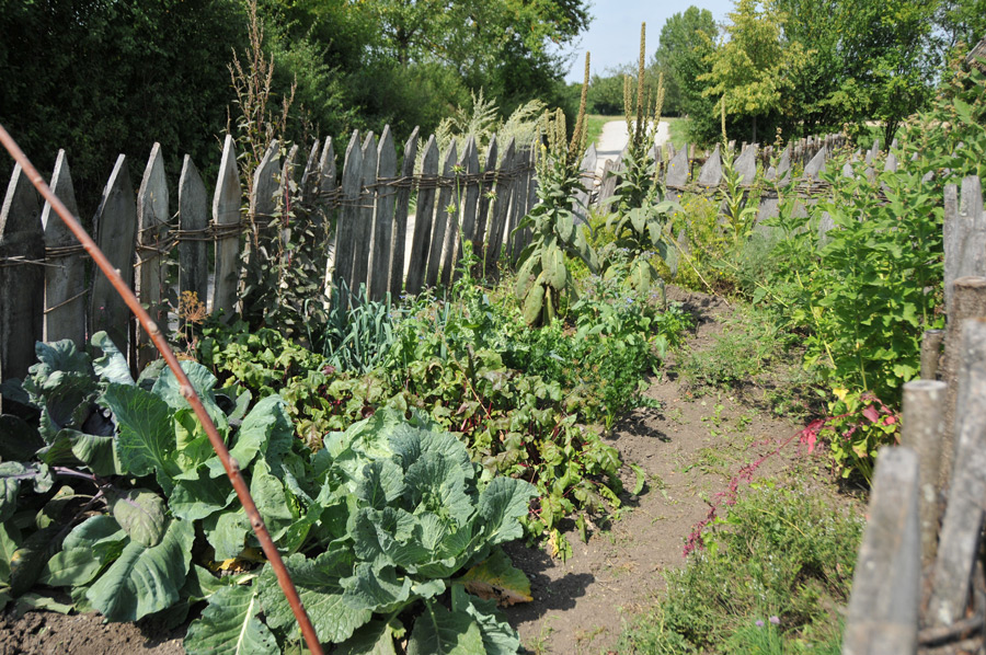 Wir treffen auf einen der vielen Bauerngärten, wo ein Mitarbeiter den Gemüsegarten versorgt. Unsere Nachfrage nach den Gemüsesorten wird prompt mit einer frisch geernteten Möhre beantwortet. Überhaupt gibt es neben den historischen Gebäuden, großzügig angelegte Flächen von Gemüse und Obst, Grün- und Ackerland, wo ein zumindest ein Teil des Eigenbedarfs geerntet werden kann. So dient der Garten- und Ackerbau nicht nur der Anschauung der Besucher sondern erfüllt auch den Zweck der Versorgung. Uns hat diese Konzeption begeistert, zumal man Einblicke auch in die Pflanzenwelt erhält, die es längst nicht mehr weit verbreitet gibt. Kennen Sie noch Flächen wo Hirse angebaut wird?