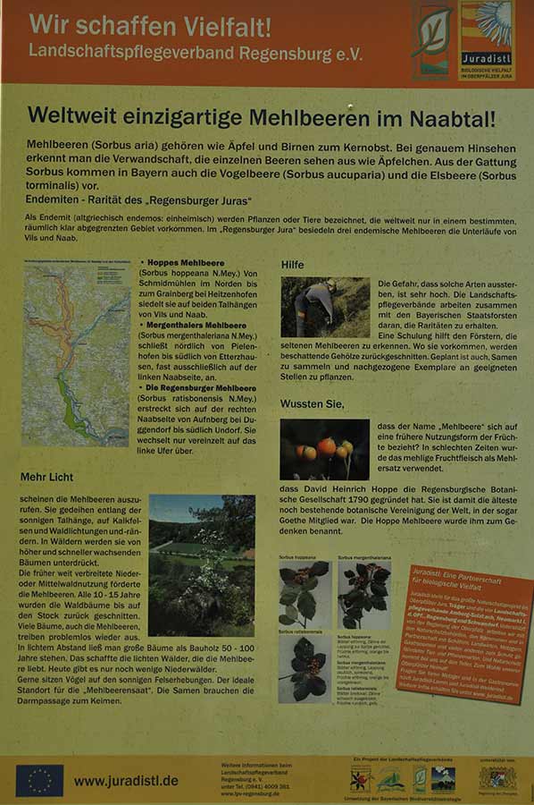 Als Endemit werden Tiere oder Pflanzen bezeichnet, die weltweit nur in einem bestimmten, räumlich klar abgegrenzten Gebiet vorkommen. Im "Regensburger Jura" besiedeln drei endemische Mehlbeeren die Unterläufe von Vils und Naab.
