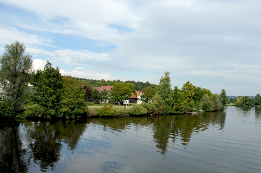 Ausführlich hatten wir ja bereits von unserer Fahrradtour entlang der Naab in Richtung Kallmünz berichtet, nun sollte es die Naab hinab in Richtung Regensburg gehen, wo bei Mariaort, etwa 7 km vor den Toren Regensburgs, die Naab in die Donau mündet. Wir hatten uns als ersten Zielort der heutigen Tour die Wallfahrtskirche Mariaort ausgewählt, die nach Überquerung der Naab mittels einer Holzbrücke, erreicht wird. Von hier aus geht es dann nach Überquerung der Mariaorter Eisenbahnbrücke über die Donau auf dem Donauradweg weiter Richtung Regensburg und Kehlheim.