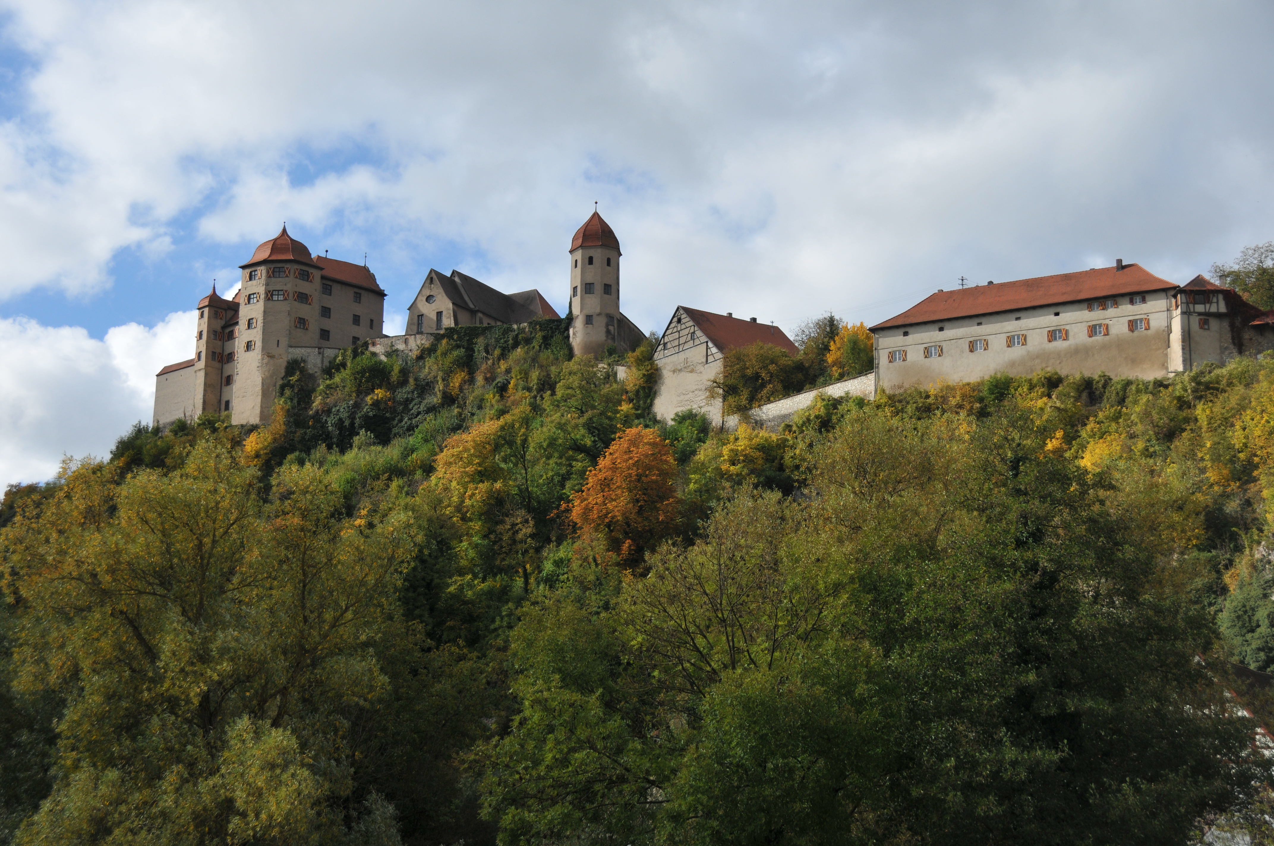 Harburg liegt im schwäbischen Landkreis Donau-Ries direkt an, bzw. über der Romantischen Straße zwischen Donauwörth und Nördlingen an der Wörnitz, einem Fluss, dem wir schon in Wassertrüdingen begegnet waren und der in die nahe Donau fließt. Schon im Wort Harburg stecken zwei Worte, die auch klar definieren, wie die Lage des Ortes zu verstehen ist. Klar ist schon ohne weitere Erläuterung der Begriff Burg, der sich natürlich auf die herrliche Burganlage aus dem 11. Jahrhundert oberhalb der Stadt bezieht. Interessant wird die Deutung des Wortes „Har“. Aus alten Urkunden weiß man, das der Name der Stadt leicht abweichend zwischen Harburc, Horeburch und Horburc wechselte. Der Begriff „horo“ stammt aus dem Althochdeutschen und bedeutet so viel wie Sumpf oder Moor. Harburg ist folglich die Burg über dem Sumpf. Betrachtet man den Verlauf der Wörnitz, auch in der unmittelbaren Nähe der Stadt, so lässt sich leicht auch der Name erklären, zu wild und schilfig scheint das Gelände des Flussverlaufs zu sein.