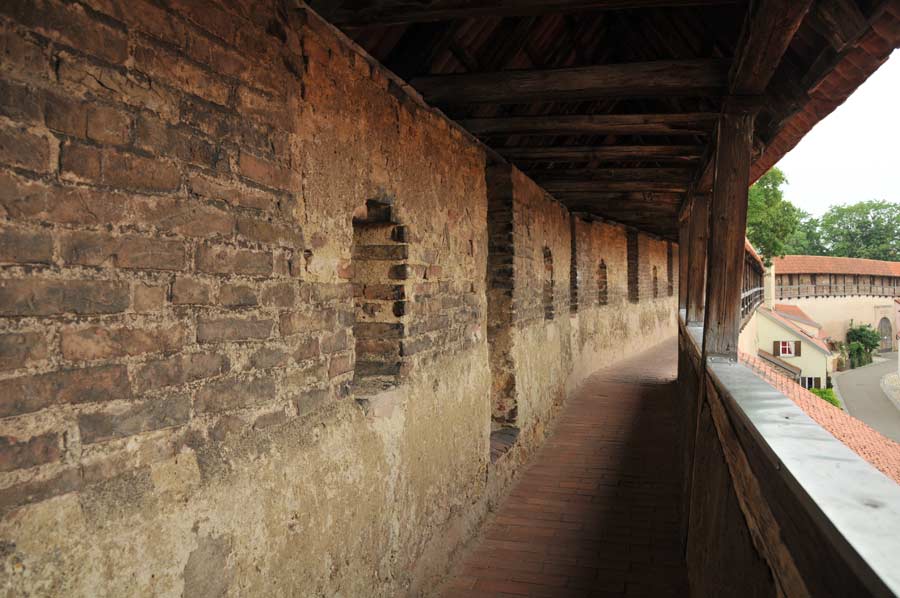 Bereits nach zweistündiger Fahrt erreichten wir Nördlingen, wo wir der Beschilderung bis in die Stadt hinein folgten. Auch ein Parkplatz unterhalb der Stadtmauer war schnell gefunden, so das wir mit unserem Rundgang beginnen konnten. Ähnlich wie schon in Rothenburg ob der Tauber ist auch die Stadtmauer von Nördlingen aus dem Jahr 1327 sehr gut erhalten und mit ihren fünf Toren in den Tortürmen, den elf weiteren Türmen und den Bastionen vermittelt sie einen tiefen Einblick in die Zeitgeschichte des Mittelalters, der durch den Rundweg auf dem hochgelegenen Wehrgangs noch verstärkt wird. Da wir in der Nähe des Berger Tors im Süden geparkt hatten, begannen wir auch hier unseren „Wehrgang“. Im Uhrzeigersinn folgte das Baldinger Tor, das Löpsinger Tor, wo wir auch dem Stadtmauermuseum einen Kurzbesuch abstatteten, dann folgte das Deininger Tor sowie das Reimlinger Tor. Im Stadtmauermuseum konnten wir auch erste weitere Informationen zum Meteoriteneinschlag erhalten, die uns auch den Kirch-Turm erklimmen ließen. Deutlich konnte man von oben den Umriss des Kraters bereits von hier aus erkennen. Interessant auch die alte Bastei, die in zwei Geschossen bis zu 10 Geschütze nebeneinander aufnehmen konnte und sehr gut erhalten ist. Mit Feilturm, Löwenturm, oberer Wasserturm, Backofentürmen, Spitzturm, unterer Wasserturm und Reißturm sollen die weiteren Turmbauten an dieser Stelle zumindest erwähnt werden. Ein typisch mittelalterliches Städtchen halt, das in seinem Kern erhalten geblieben ist.