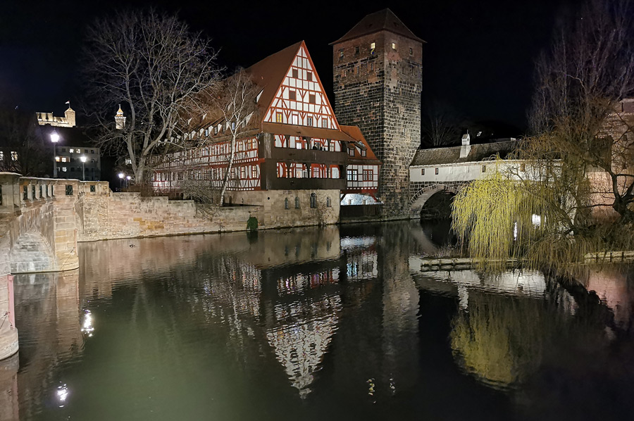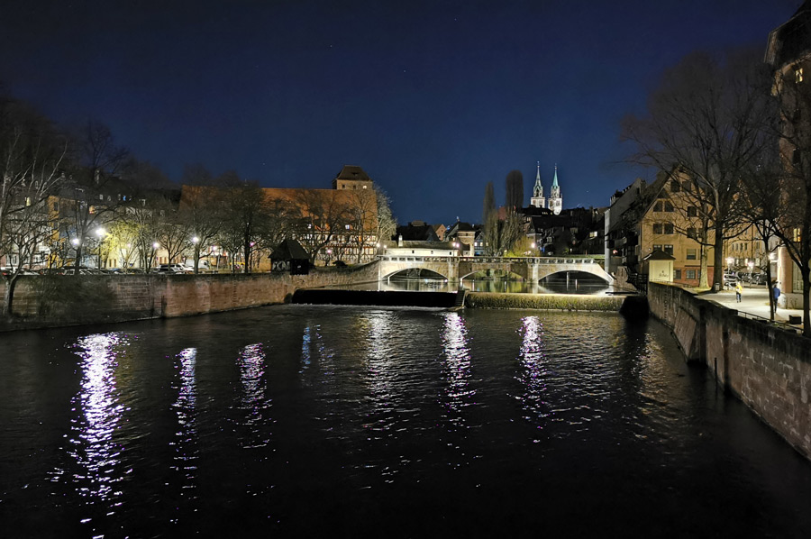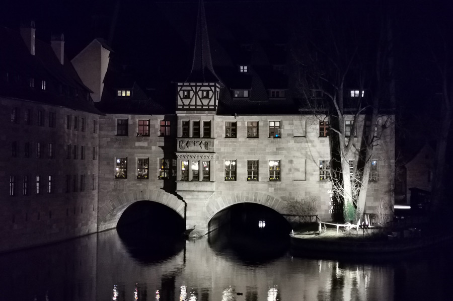 Auf der Museumsbrücke, mit Blick auf das Heilig-Geist-Spital (Nr. 9) endet auch unsere erste Tour durch die Altstadt Nürnbergs.