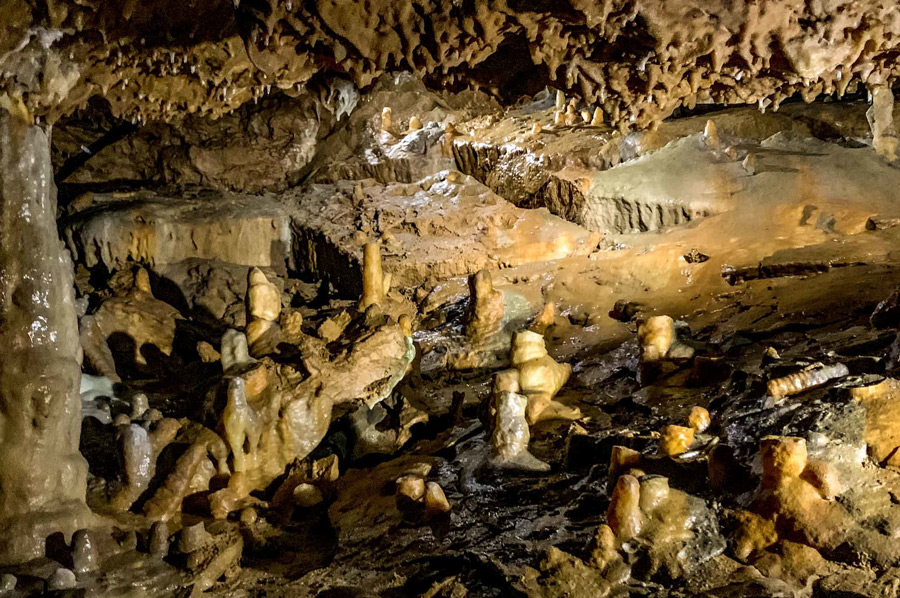 Neben den Stalagtiten und Stalagmiten, die heute sehr modern mit farbigem, gleichzeitig energiesparendem LED-Licht ausgeleuchtet werden, hat man Knochenreste von über 90 Höhlenbären gefunden, die wohl einst in der Höhle lebten. Ein Skelett eines Höhlenbären ist ebenfalls gut ausgeleuchtet gleich zu Beginn des Rundwegs ausgestellt. Trotz einiger weniger Engpässe ist die Höhle sehr gut begehbar, so dass auch ohne großartige Kletterei der Rundweg gegangen werden kann.