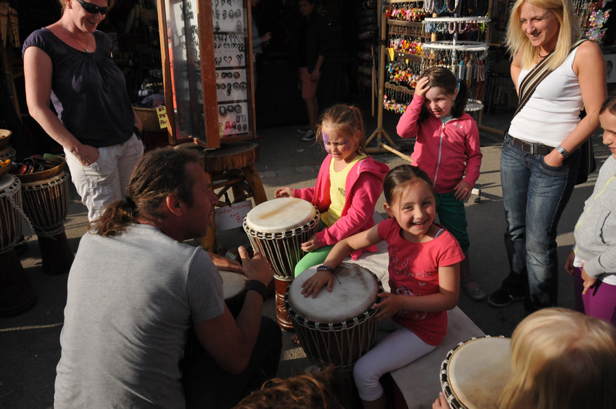 Allerdings ist auch das Programm dieses Tages auf Kinder ausgerichtet, was gleich nach dem Eingangsportal durch den Zauberer „König Alberto“ aus München als zutreffend zu bezeichnen ist, der mit seiner Zaubershow der aus Ohren, Nasen oder Mündern erscheinenden Silbermünzen besonders die Kleinen in seinen Bann zieht.