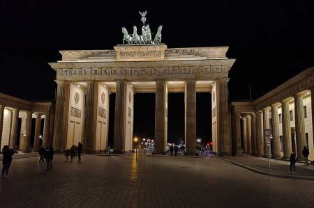 Schon von Weitem gut erkennbar, das Brandenburger als ein frühklassizistisches Triumphtor, das an der Westflanke des quadratischen Pariser Platzes im Berliner Ortsteil Mitte steht. Es wurde als Abschluss der zentralen Prachtstraße der Dorotheenstadt, des Boulevards Unter den Linden, in den Jahren von 1789 bis 1793 auf Anweisung des preußischen Königs Friedrich Wilhelm II. nach Entwürfen von Carl Gotthard Langhans errichtet. Die das Tor krönende Skulptur der Quadriga ist ein Werk nach dem Entwurf des Bildhauers Johann Gottfried Schadow. Westlich des Brandenburger Tores befinden sich die ausgedehnten Grünflächen des Großen Tiergartens, die in gradliniger Verlängerung der Straße Unter den Linden von der Straße des 17. Juni durchquert werden. Die Platzfläche unmittelbar westlich des Tores trägt den Namen Platz des 18. März.