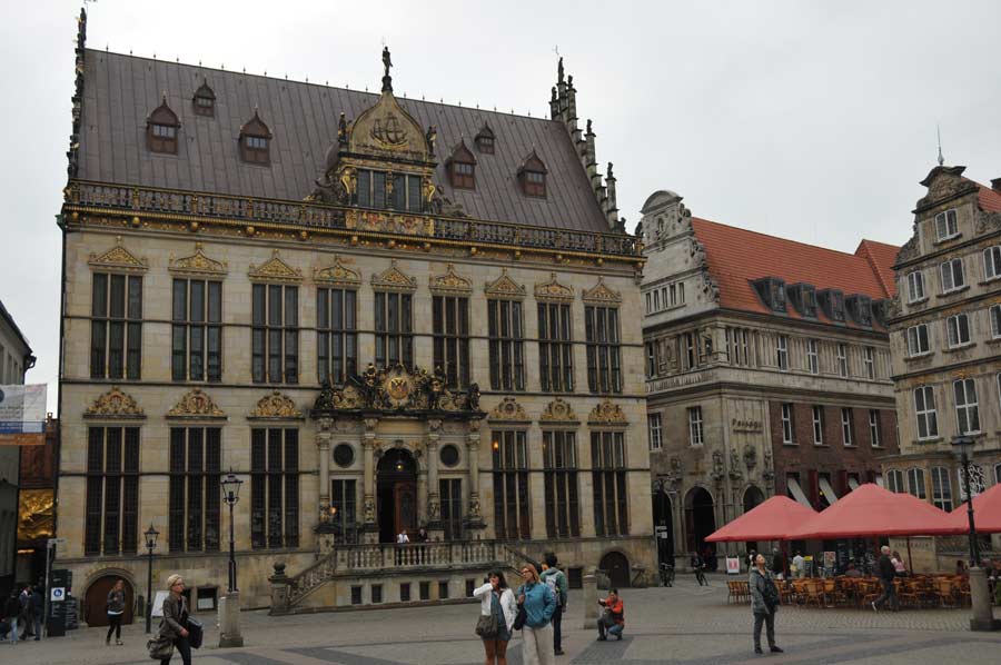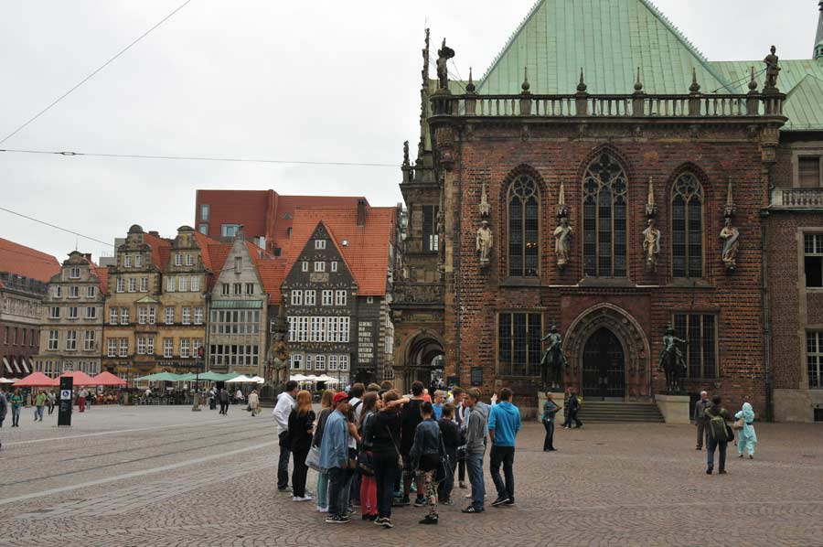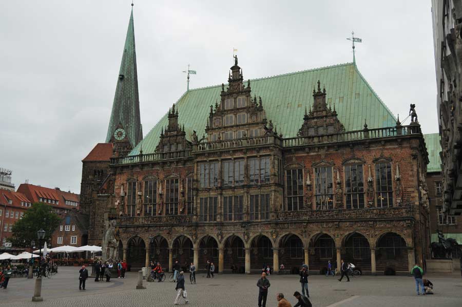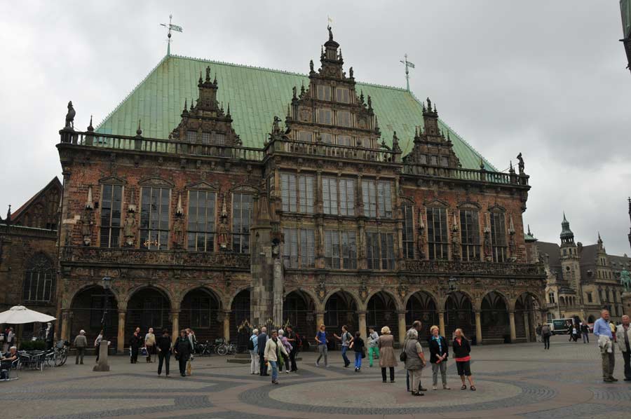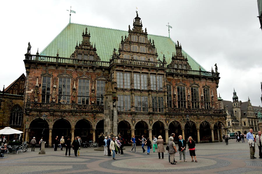 Nach dem Einparken des Fahrzeugs Nähe Martinistraße war dann der Weg durch die Fußgängerbereiche bis zum Rathausplatz von Bremen schnell erledigt. Die historische Bebauung des Platzes mit den ornamentierten Backsteinfassaden des weltberühmten Rathauses, dem St. Petri Dom, der Bremischen Bürgerschaft, dem Marktplatz mit dem Bremer Roland und all den Cafes und Bars in den historischen Gebäuden waren schon auf den ersten Blick weit mehr als nur beeindruckend.