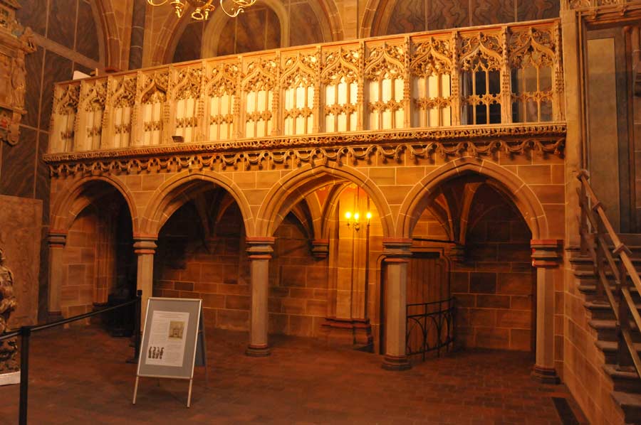 Das Alte Rathaus wurde 1405 - 1409 als repräsentativer und wehrhafter Bau zeitlich fast parallel mit dem Bremer Roland von 1404 auf einem Höhepunkt der mittelalterlichen Stadtgeschichte errichtet. Der Saalgeschossbau aus wechselndem rotem und schwarz glasiertem Ziegelstein ist 42 Meter lang und 16 Meter breit, sein Innenausbau erfolgte bis 1412. Im dreischiffigen Ratskeller, den zu besuchen allein Aufgrund der Architektur sich lohnt, ruht das Gewölbe auf 20 Pfeilern aus Sandstein, in der Unteren Halle stützen 20 Eichenholzständer die Holzbalkendecke, die unter den Schritten der Besucher obligatorisch knarren. Die Obere Halle ist als ungeteilter Saal mit freitragender Decke reich mit Wandbildern, Schmuckportalen und Holzschnitzereien ausgestaltet.