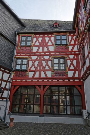 Über 155 Meter lang ist die Fassade des 1605 gebauten Fachwerkbaus. Bis 1815 war der Amtshof Sitz der Oberamtmänner des kurtrierischen Amts Camberg. Heute residiert hier die Stadtverwaltung Bad Camberg.