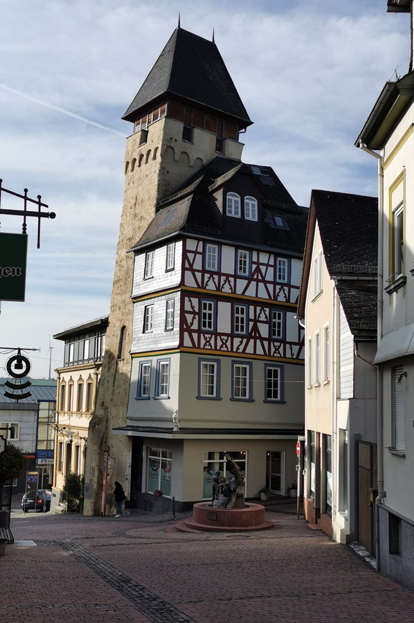 Ein beeindruckender Rest der zwischen 1365-80 erbauten Stadtmauer ist der Obertorturm, der auch das Wappen von Bad Camberg schmückt.