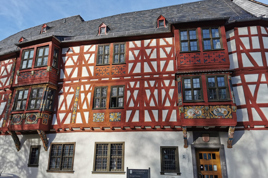 Umgeben von den absolut sehenswerten Fachwerkhäusern und Stadtmauerresten bestimmt das Amthof-Gebäude das Bild der historischen Altstadt, denn das Ensemble zählt zu den längsten Fachwerkgebäuden in Deutschland, wie wir bei Lesen der Infotafeln erfuhren.
