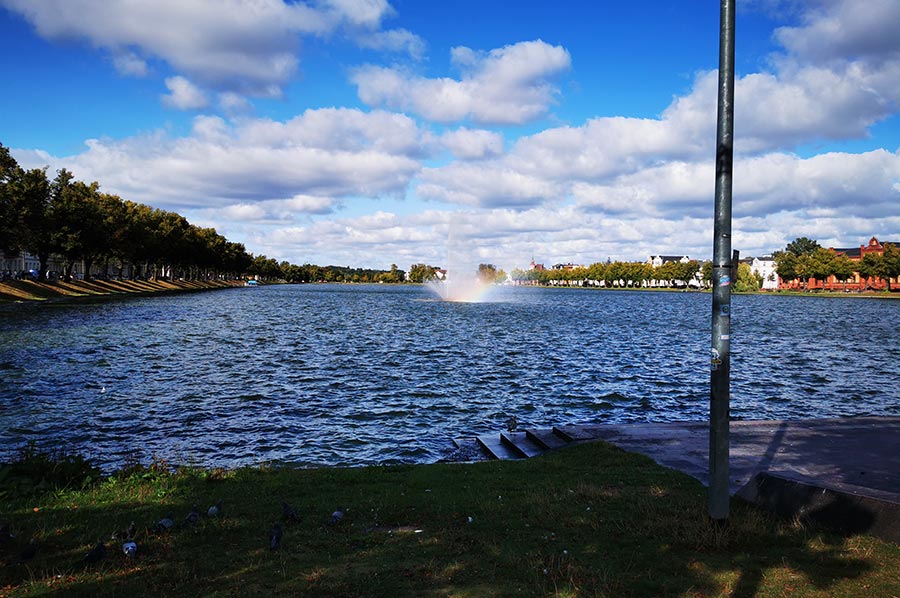 Diverse städtische Fachwerkhäuser sind über die Jahrhunderte erhalten geblieben, häufig zielgerichtet restauriert und laden somit zu ausgedehnten Spaziergängen durch die fast verschlafen wirkenden Gassen ein. Hier in der Altstadt erlebt man hautnah das besondere Flair der im Mittelalter gegründeten Stadt Schwerin. Am Ende der Mecklenburger Straße stoßen wir auf den etwa 12 Hektar großen Pfaffenteich, an dessen grünen Ufern etliche Bänke für eine erste Ruhephase einladen. Selbst eine Bootstour auf dem Teich ist möglich, so gibt es für Besucher die Möglichkeit einer kurzen Seefahrt in der Stadt oder auch nur um Fußwege zu verkürzen. Seinen Namen verdankt der Pfaffenteich der Kirche in deren Besitz der See sich lange Zeit befand. Die Kirchenleute - auch Pfaffen genannt wurden im Volksmund zum Namensgeber. Später blieb der Name Pfaffenteich erhalten.