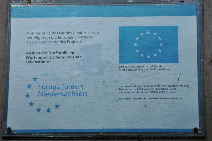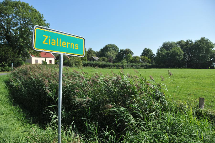 Wir nutzen unseren Aufenthalt in Friesland auch zum Besuch des Warftendorfes Ziallerns, das wir auf etwa halber Strecke zwischen Jever und Carolinensiel erreichen. Bereits von Ferne kann man deutlich die Höhe des sich aus der Landschaft heraushebenden Dorfes erkennen. Ein schmaler Straßenring führt um das gesamte Dorf herum, das wir entsprechend zunächst umfahren. Die teilweise modernen Wohnhäuser erstrecken sich entlang des Fahrwegs, allerdings immer zum Warftenhügel hin ausgerichtet. Dann stellen wir das Fahrzeug ab und erkunden das Dorf zu Fuß. Schmale Fußwege, die deutlich zum Mittelpunkt hin ansteigen, durchkreuzen das Dorf, in dessen Mittelpunkt sich auch die Regenwassersammelstelle befindet, über die jede Wurt verfügt. In einem früheren Arbeiterhaus gibt es ein Wurteninformationszentrum stellvertretend für die vielen gleichartigen Dorfanlagen im Wangerland. Es ist recht beeindruckend, wenn man sich überlegt, das die Menschen seiner Zeit sich allein auf die Höhe des Dorfhügels verlassen haben, um Sturmfluten zu überstehen.