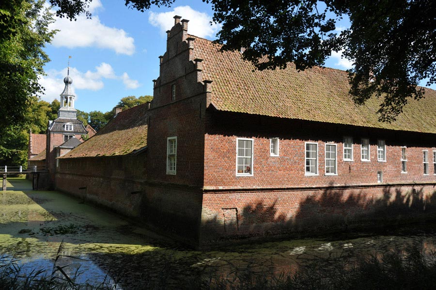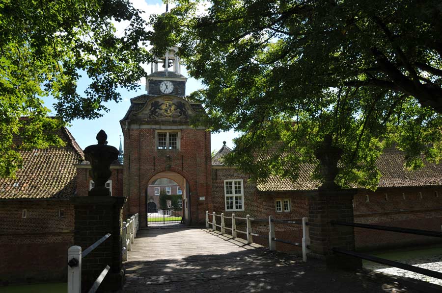 Aber beginnen wir in der Geschichte dieser Wasserschlossanlage, wo es bereits seit 1212 einen so genannten Uthof (Außenhof) des Häuptlingsgeschlechts der Manninga, den Herren von Westeel, Pewsum und Bergum gegeben hat. Diesen Außenhof ließ Lütet I. Manninga vermutlich um die Mitte des 14. Jahrhunderts zu einem Steinhaus ausbauen. Er, Lütet, wurde so zum Namensgeber des Schlosses und der sich darum herum entwickelnden Ortschaft Lütetsburg.