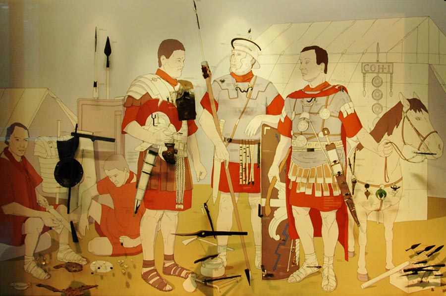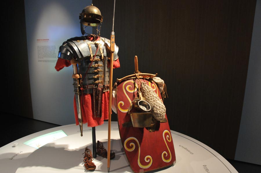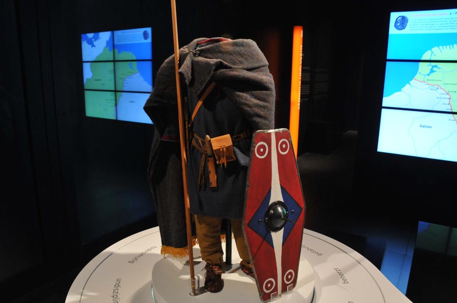 Wir nutzten unsere Anwesenheit im Norden Deutschlands also auch zu einem Kurztrip nach Kalkriese, gespannt darauf, was uns erwarten würde. Zunächst gelangten wir in ein großes Besucherzentrum gleich am Eingang, das sowohl umfängliche Information zum Gelände als auch vielfältige Literatur zu den Römern anbieten konnte. Unter der Leitung eines Tourguides ging es dann zunächst in den metallischen Museumsbau, der auch gleichzeitig als Aussichtsplattform genutzt wird. Zunächst etwas abstoßend wirkend, kann man dann nach erfolgten Erläuterungen den Sinn des Bauwerks sowie seiner Materialienwahl durchaus nachvollziehen.